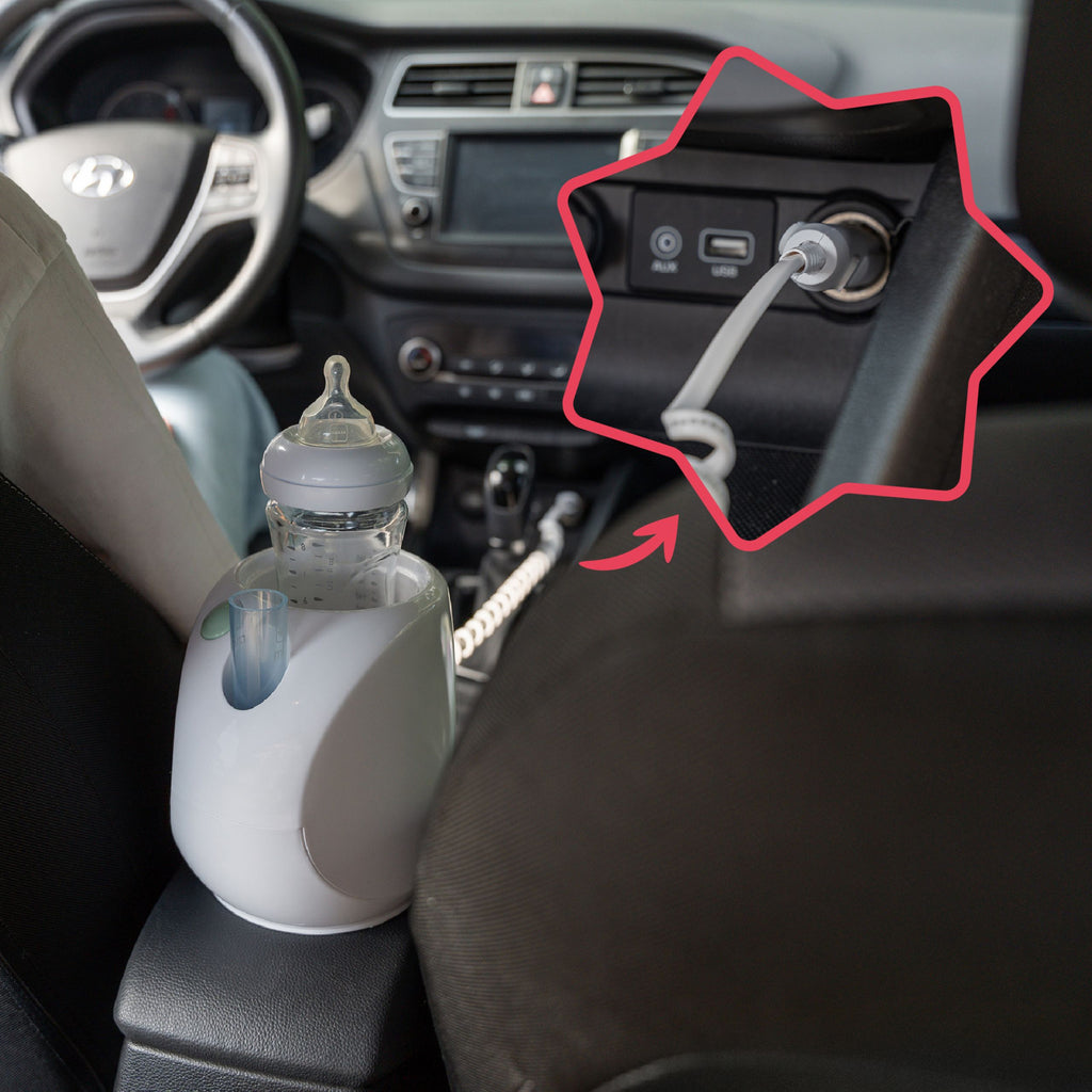 - Version nomade pour chauffer le biberon dans la voiture (sur l'allume cigare)